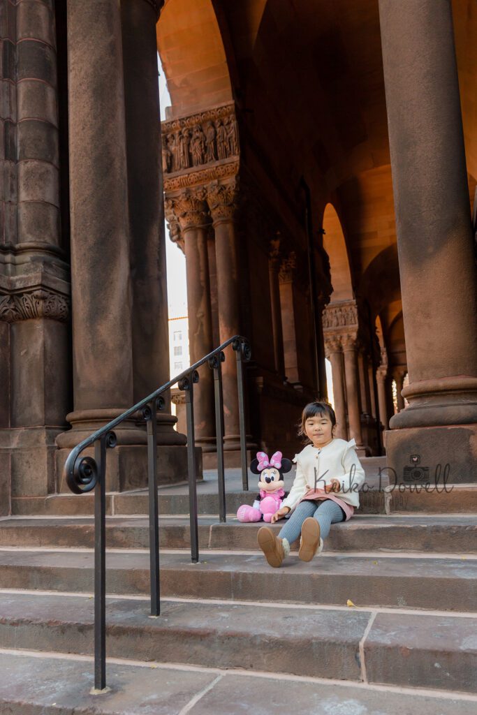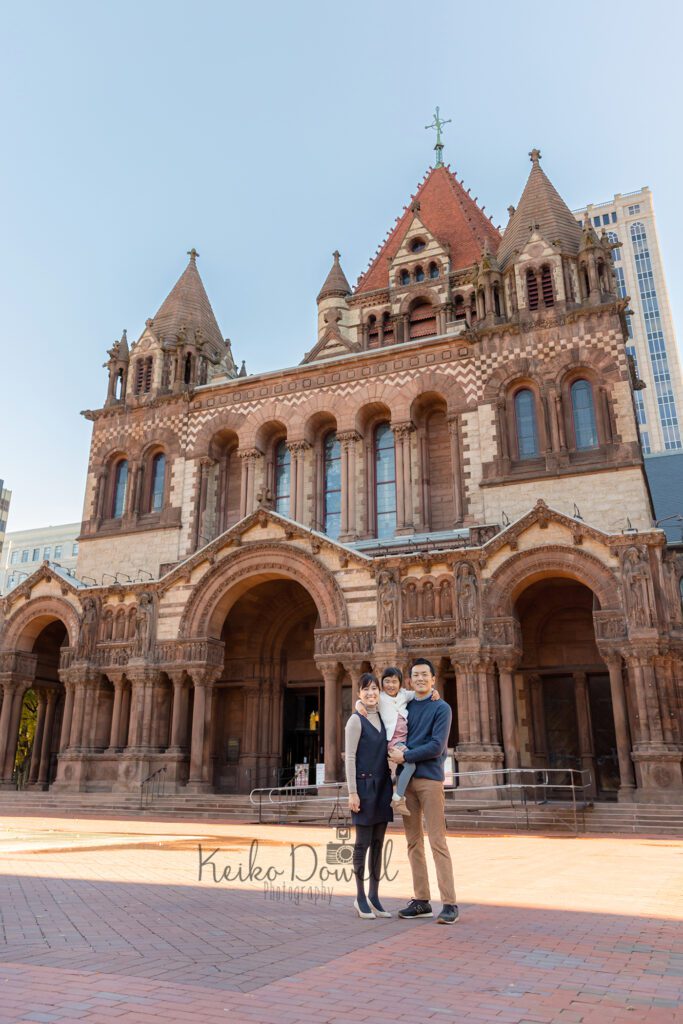 せっかくなので大好きなぬいぐるみも一緒に記念写真。コプリースクエア周辺のロケーションでは、ライブラリーとトリニティ教会どちらも建物自体が美しいのでどこで撮っても絵になります。