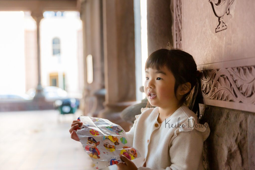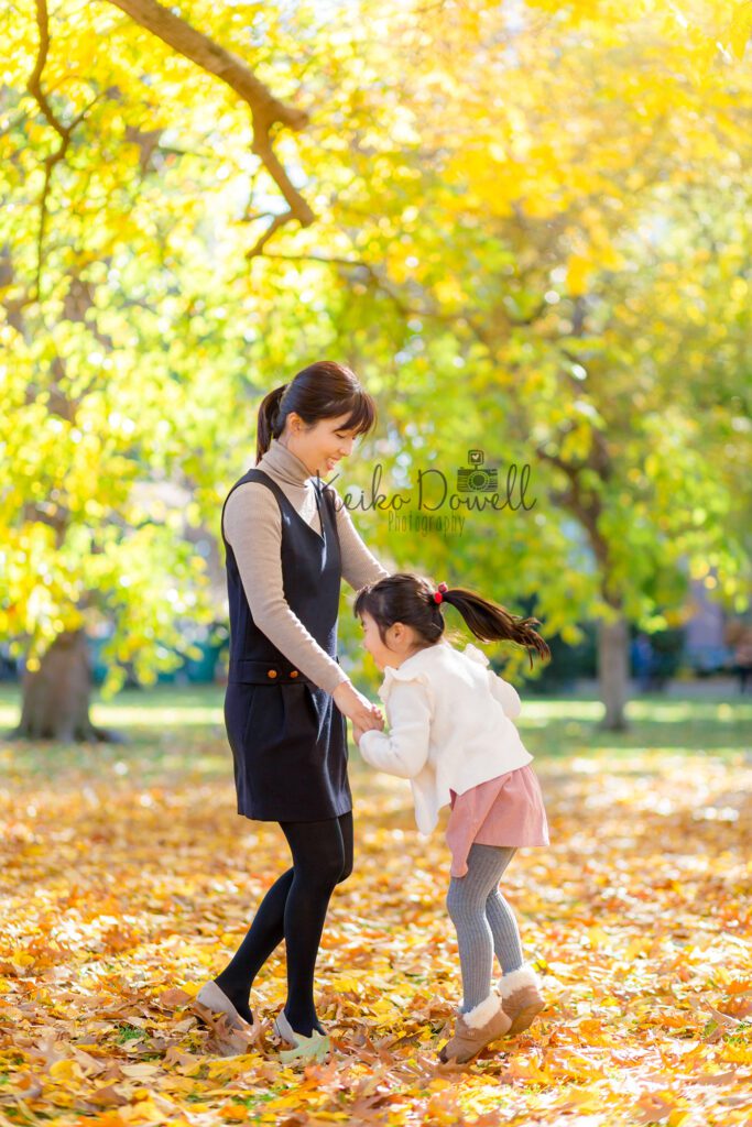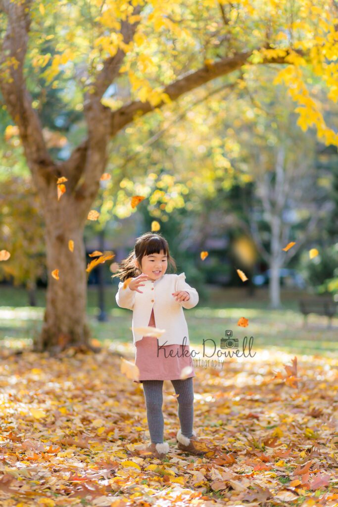 途中で好きなキャラクタークイズをしてみたり、走ってみたり、色々と遊びながらパブリックガーデンへ移動し、ここでもたくさんの落ち葉で遊びつつ、たくさんシャッターを切りました。元気一杯のお子さんたちとの撮影はやはり走り回れるロケーションがおすすめ!毎回撮影に飽きないように工夫しながら撮っています。