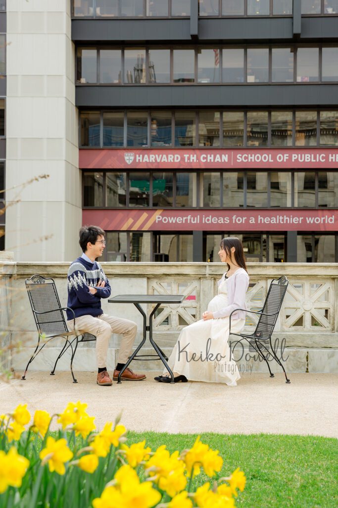 Maternity Photo Session / Boston, MAApril 14, 2022ハーバードメディカルスクールにてマタニティーフォトの撮影です。 少しずつ木々や花も賑やかになってきたボストン、これから美しい季節の到来です。そんな中でゆったりと進めることができた撮影でした。ご用意いただいた小物もとても可愛くて、これらを身につけた赤ちゃんの姿を想像するだけでこちらも笑顔になってしまいます。 無事のご出産をお祈りしています。次は家族3人の写真撮影でお会いできるのを楽しみにしています! この度はありがとうございました。 by KeikoPosted in Maternity