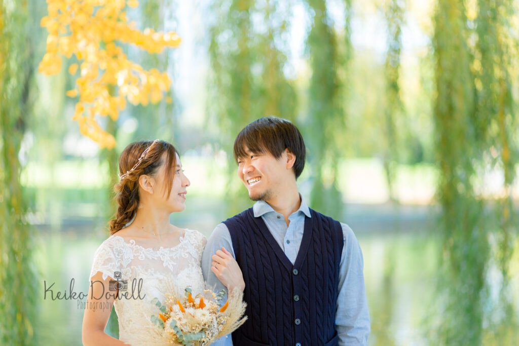 この日は気温自体は寒かったのですが、太陽光がたっぷりあったので温かみのある写真に仕上がりました。お二人らしく自然な笑顔もたくさん残すことができて良かったです。